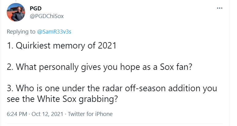 As always, I appreciate anyone who takes time to read my writing, I love writing, and I am trying to improve on it. If you have constructive criticisms, please let me know. I try to focus on what I can, I am by no means an expert in baseball, but I enjoy it very much. This is where I go to escape for a little while, and let my mind wander. Thank you to those who asked questions, it shows that you care enough to even ask a question. I hope this off-season is positive for the White Sox, and I am sure as more things come through, I will have more to write. I hope to join all of you at Guaranteed Rate Field (ugh) in 2022, granted we have a baseball season.