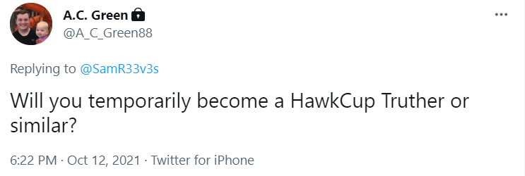 I had a personal Twitter account question from @A_C_Green88:
