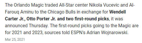 Robin is absolutely right, it was a trade you would’ve never seen under Gar Forman and John Paxson. Understanding you could offload a bad contract in Otto Porter and a big man who wasn’t working in the current team direction, while also getting a two time All-Star in the deal, is a big confidence booster. Fans had been clamoring for a difference in leadership and AKME as they are known, are doing just that. Vučević didn’t really have much time to get into a new system on a team not fighting for a playoff spot in 2021, so he just did what he knew, rebounded and scored. He ran a good two man game with Zach Lavine, basically because that’s all the Bulls had at that time. Vučević or “Vooch” was just playing his normal role he’s played the last few years, which is focal point. He was the main source of everything for Orlando in his time there.